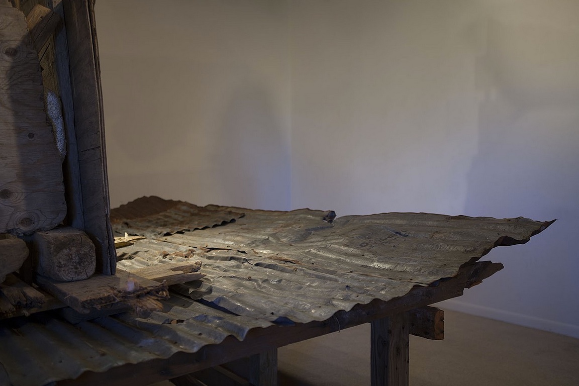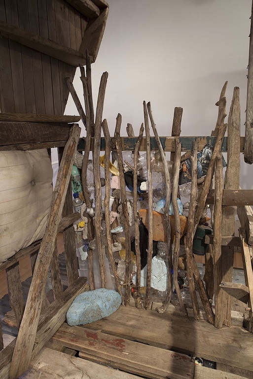 RAFT is an immersive, shanty-like, vessel of last resort made entirely of flood debris. It is an impractical and landlocked craft that presents a tension between ecological disaster and recreation. It is part museum exhibit and part mini golf shipwreck.