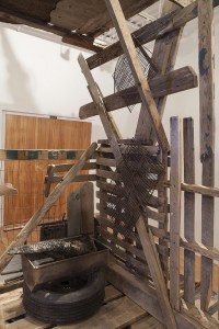 RAFT is an immersive, shanty-like, vessel of last resort made entirely of flood debris. It is an impractical and landlocked craft that presents a tension between ecological disaster and recreation. It is part museum exhibit and part mini golf shipwreck.